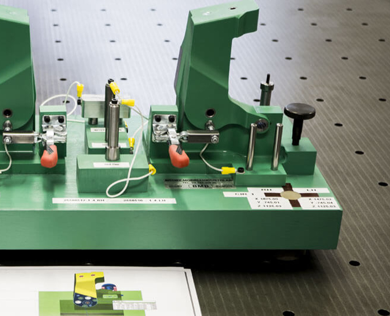 Kontrollmallar och mätfixturer för att verifiera mått, hålbild och toleranser på färdiga detaljer.